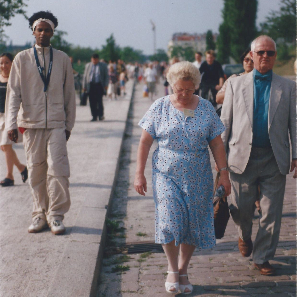Schon damals lockte der Mauerpark mit seinem rauen Charme die Bewohner des wieder vereinten Berlins an - sei es zum Verweilen oder einfach nur, um schnellstmöglich vom Falkplatz zur Eberswalder zu kommen. Das Miteinander des "neuen" mit dem "alten" Berlin zeigt dieses Foto aus unserer Mauerpark Modestrecke.